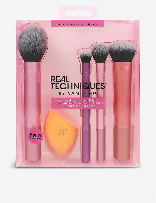 ست ۵ تیکه براش اصل ریل تکنیک یک ست آرایشی است. این برند در همکاری بین دو خواهر که اهل انگلستان هستند (سامانتا و نیکول چیمن میکاپ آرتیست های حرفه ای) طراحی و تولید شده است. ست ۵ تیکه براش اصل ریل تکنیک در چهار براش و یک اسفنج با پرزهای فوق العاده طراحی شده است. پرز های این براش ها خاصیت کشسانی دارند و علاوه بر نرم بودن بسیار محکم هستند و از براش جدا نمی شوند. هر کدام از براش ها ویژگی های خاص خود را دارند که انجام یک میکاپ زیبا را راحت تر می کنند.
