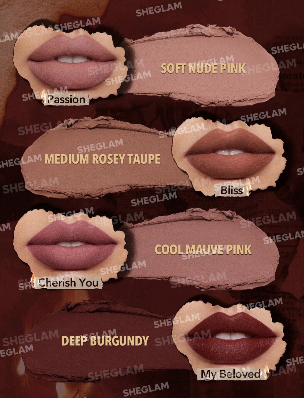 این پک شامل ۴ رژلب جامد مات در رنگ های زیر میباشد